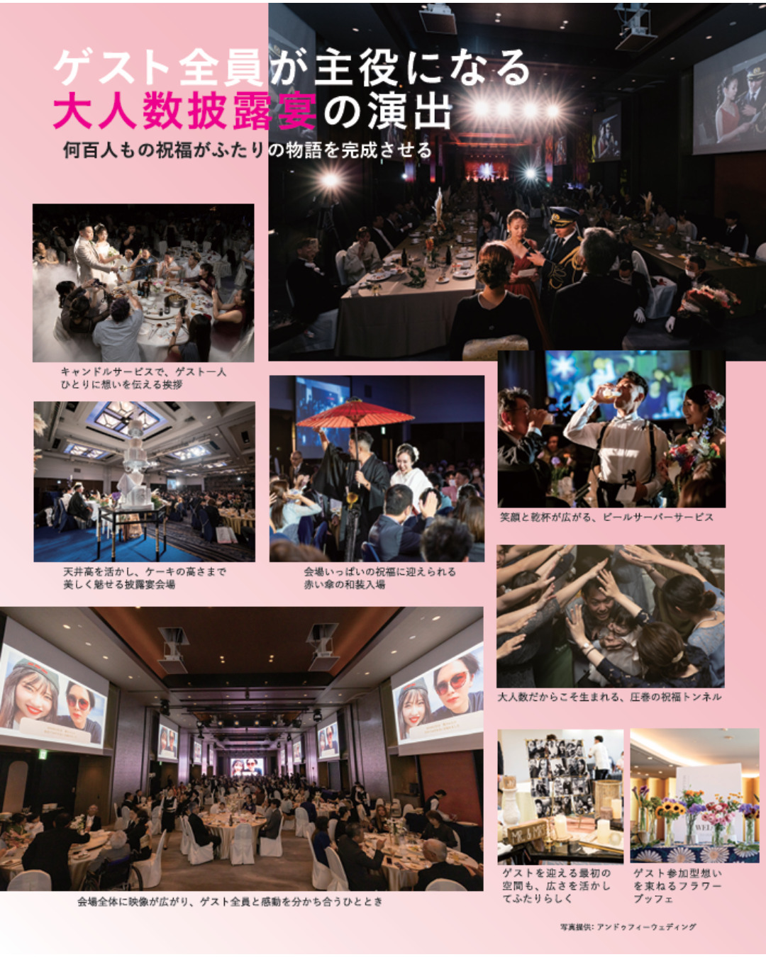 親御様にとっても「わが子が多くの人に祝福される姿」は何よりの喜びに。たくさんのゲストに囲まれた披露宴は、子育ての卒業を実感する特別な時間。「立派に育ったね」そんな言葉を直接多くかけてもらえる。それはきっと、これまで言葉にできなかった親への感謝を”カタチ”にするひとときに。
