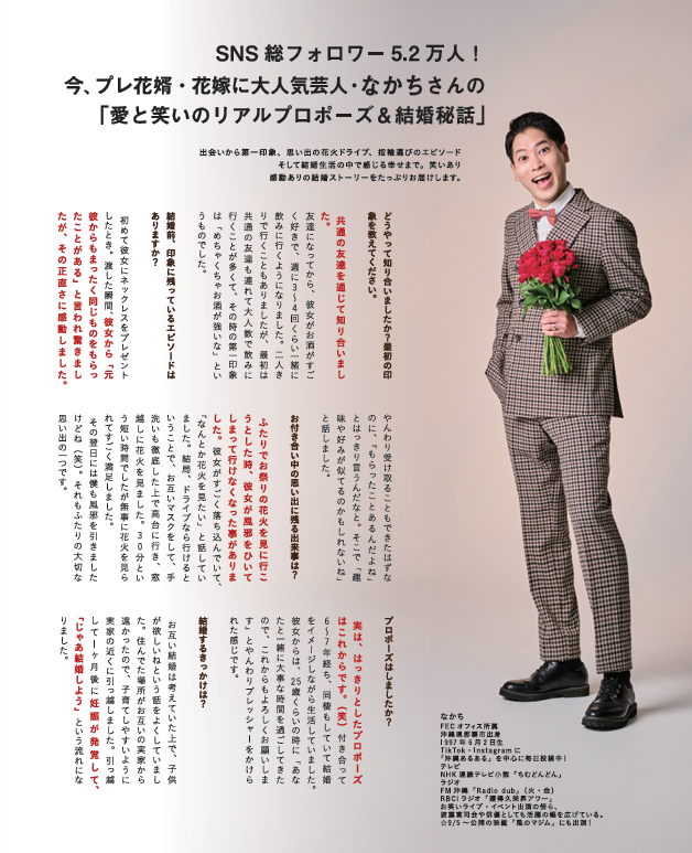SNS総フォロワー5.2万人! 今、プレ花婿・花嫁に大人気芸人・なかちさんの 「愛と笑いのリアルプロポーズ&結婚秘話」
