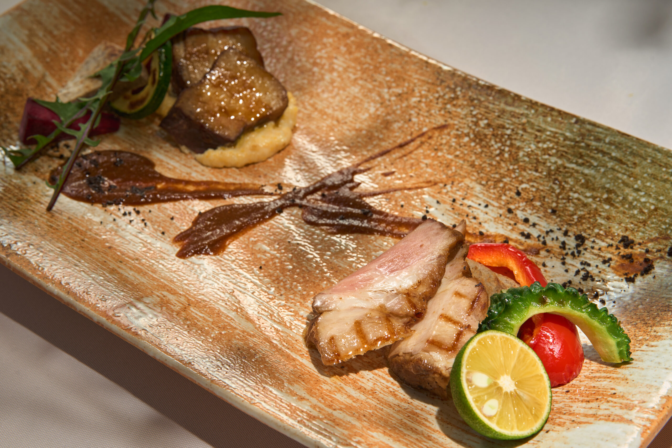 沖縄の旬食材をふんだんに使った彩り豊かなコース料理を囲みながら、